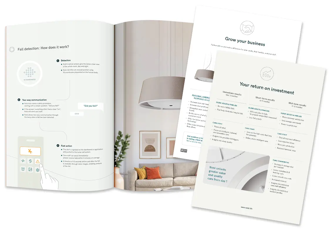 Would you like to get to know Nobi? Download our brochure and discover how our smart design lamp helps older adults live safer and more care-free lives.