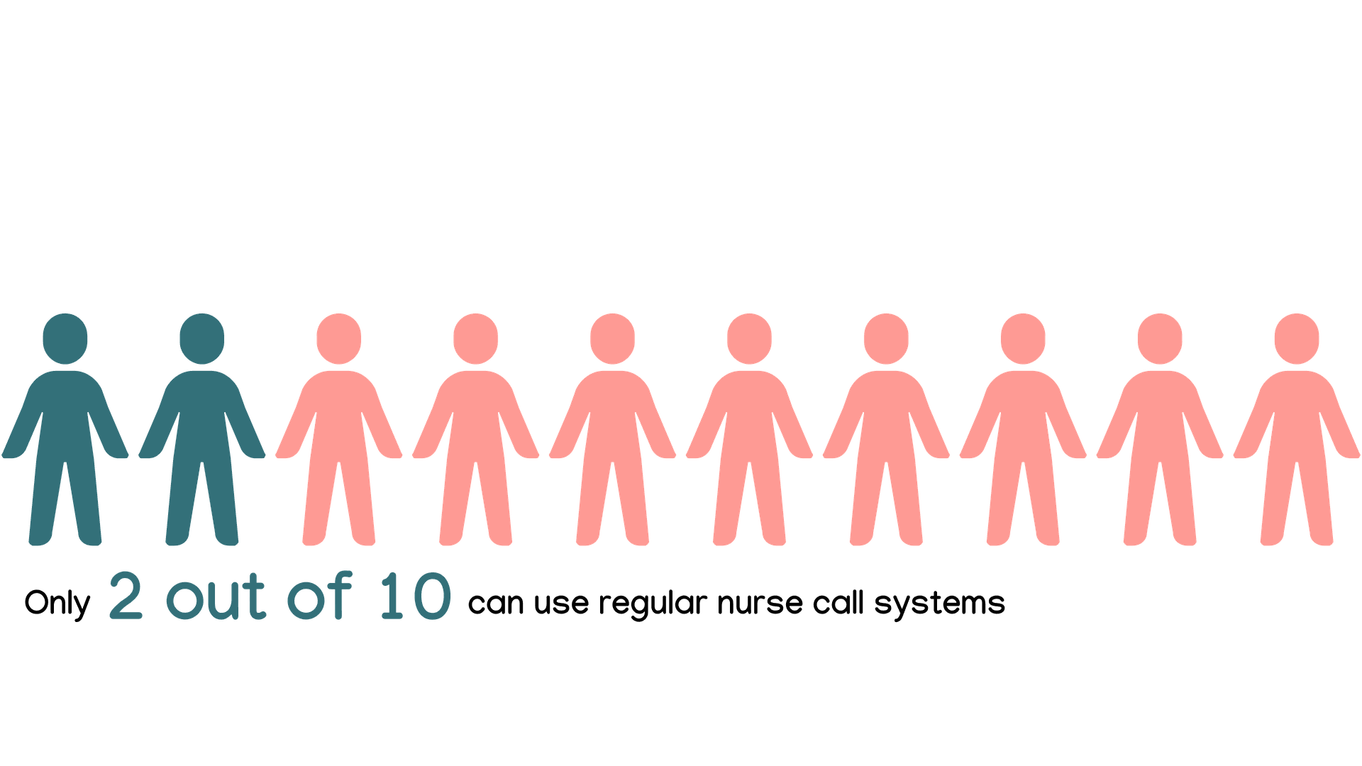 Traditionele verpleegoproepsystemen blijken slechts in 20% van de valincidenten effectief te zijn. Dit betekent dat 80% van de mensen die gevallen zijn niet in staat is om hulp in te roepen.